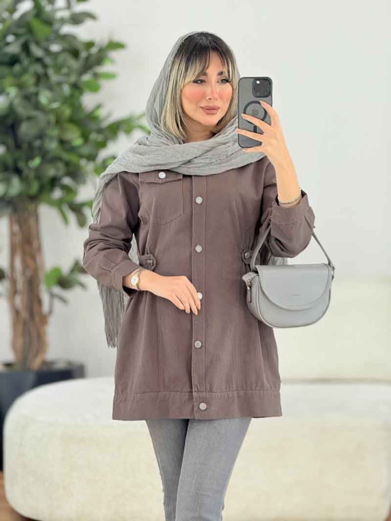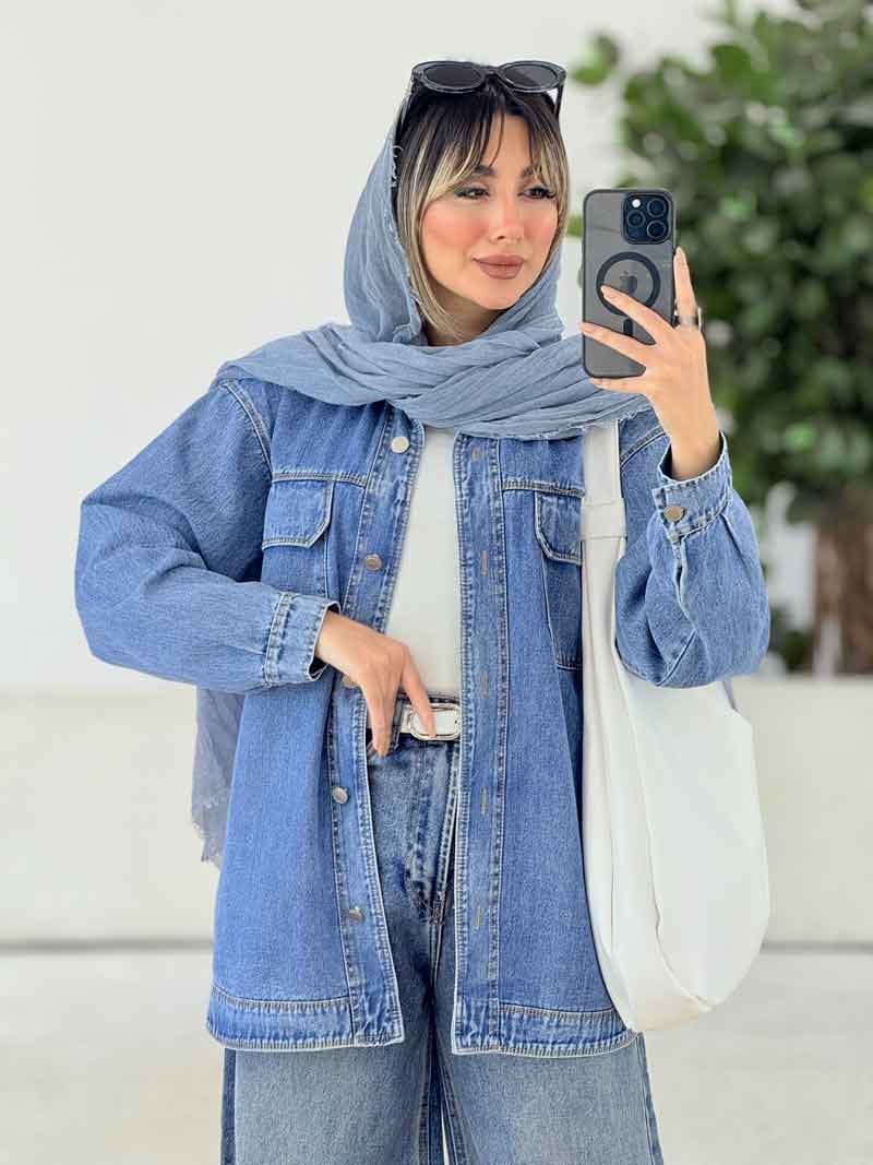 مانتو جین دو جیب پاکتی بغل سه دکمه کد 7639